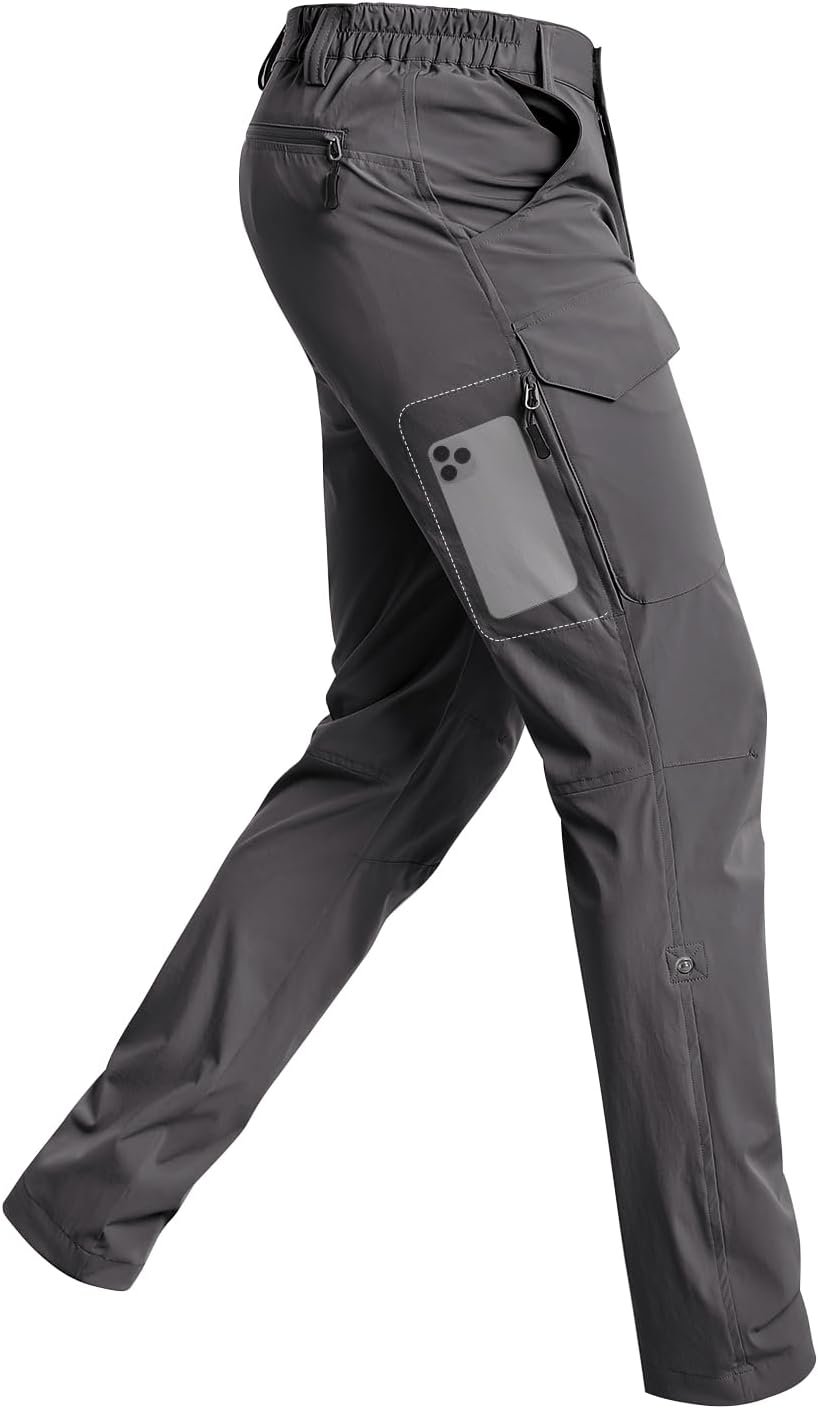 - Pants Length Adjustable: Men’s breathable outdoor pants is designed with inner snap straps and can be rolled up into capri pants, adapting to different terrains and seasonal requirements. When crossing small rivers, or encountering light rain, you can roll up the cuffs to avoid getting them wet